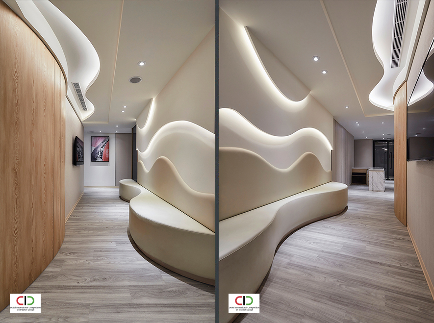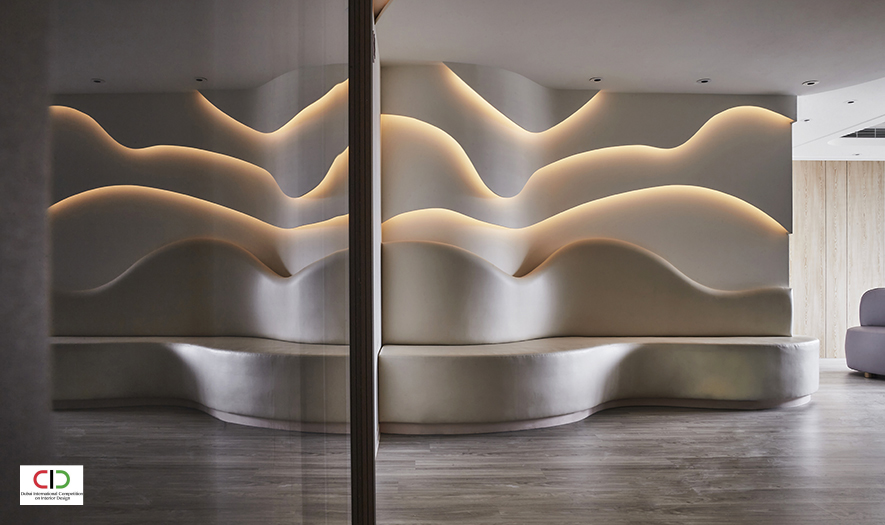 簡兆芝室內設計 簡兆芝 主持設計師 於作品《煦光蘊玉》中,透過軟裝及硬體色彩的安排,共譜優雅溫潤的灰粉色調,其中線形燈光及圓弧曲線,予人豐富的視覺感受,打造舒適的醫療空間,深受賽事評審團喜愛,最終攬獲銅獎榮耀!