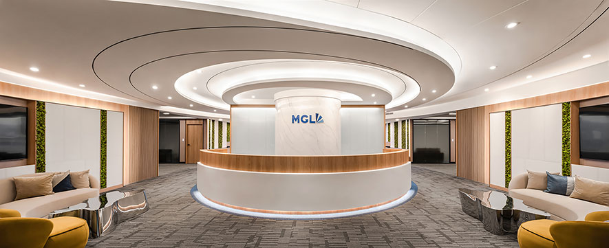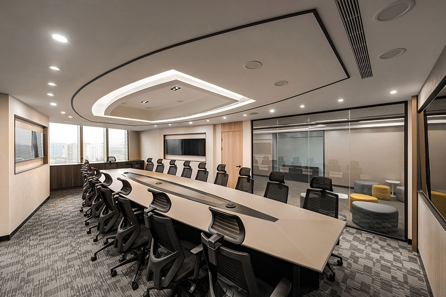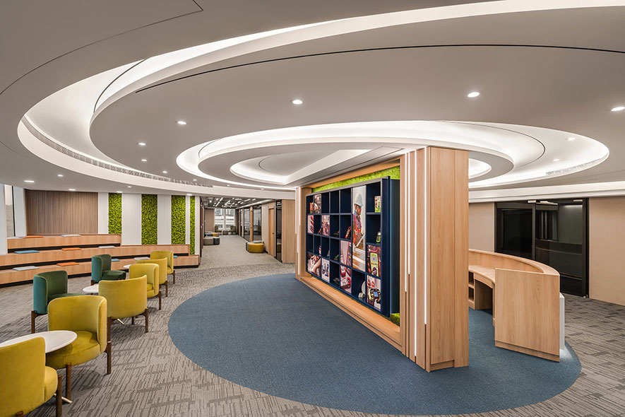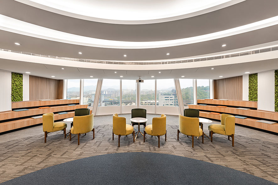 簡兆芝室內設計 主持設計師 簡兆芝 透過可自由切換通透及霧面兩種模式的電控玻璃,規劃出既能充分引入優良採光、亦可兼顧會議時隱私的明朗辦公室,而戶外自然綠意及大廳裝飾的永生苔蘚相呼應,勾勒企業永續繁榮意象;飽藏植株溫潤的商辦作品《衍流萃息》,於本屆賽事驚豔評審團眾人及廣大群眾,獲頒「最佳辦公空間獎」金獎的殊異佳績!