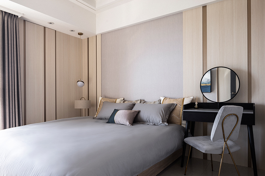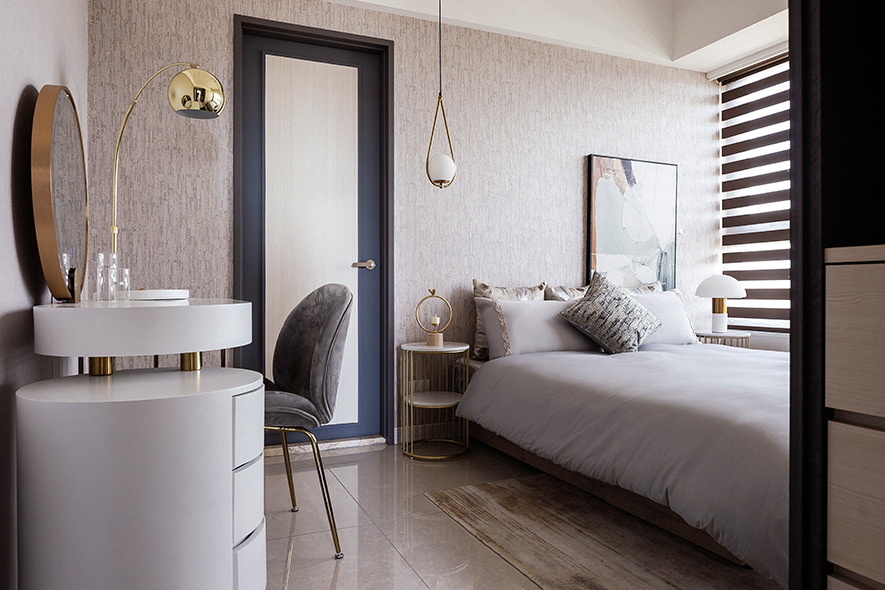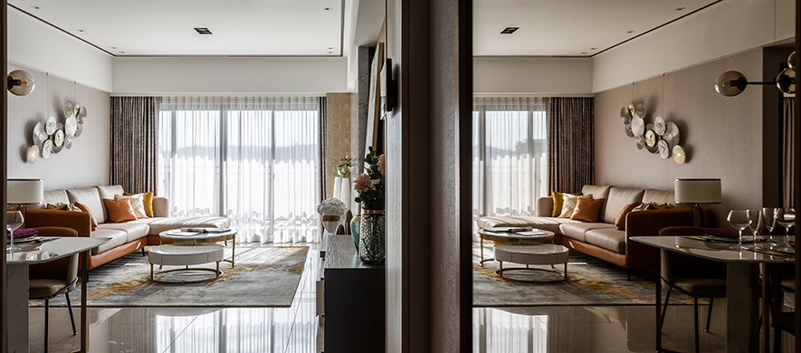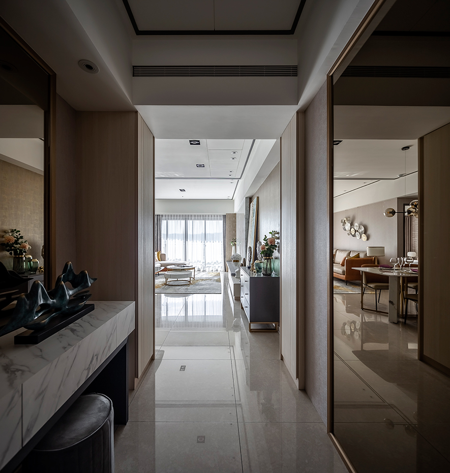 簡兆芝室內設計 簡兆芝 主持設計師 以「追求平衡」的現代手法,重新詮釋古典美學,細心安排的軟裝比重,與合宜調配的深淺色調,使這座通透開闊的宅邸,呈現一片風格沉穩、細節輕巧的精緻景色,搭配午後陽光灑落時,於角落悄然綻放的金屬光澤,熠熠生輝的迷人風采,成就居家場域的優雅靈魂。