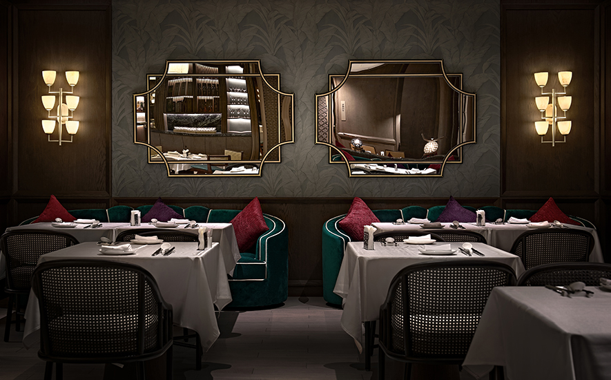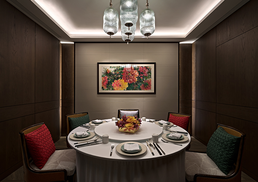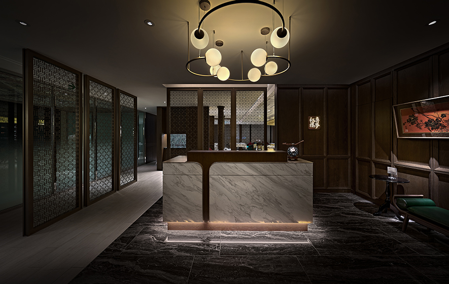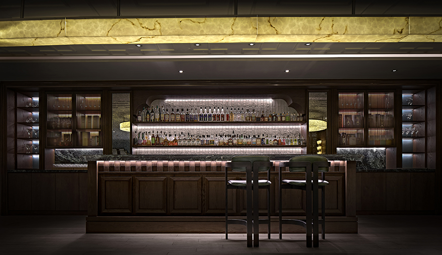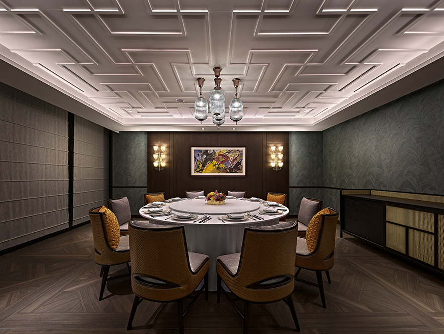 以上海租界復古摩登酒樓為設計延伸,此次集結三位業界知名設計師——屢獲國際獎項肯定的 簡兆芝室內設計 簡兆芝 主持設計師、擁有豐富餐廳、酒吧設計經驗的 十幸制作 台北負責人 陳奕翰、善於軟裝視覺整合的 莫亞空間設計 軟裝設計師 吳亞臻,三方著手策劃具瀚寓酒店門面之稱的旗艦餐廳「弈夢紅樓」。呼應主打的粵式佳餚,藉由深色木質鋪敘空間,加之典雅的鏤空屏風、線板天壁,奠定沉穩的古典氣息,同時相偕石材、金屬、造型燈具及歐式絨布沙發,展現中西合璧的摩登氛圍;濃墨重彩交織瑩柔暖光,為用餐場域注入老上海租界的復古情調。
